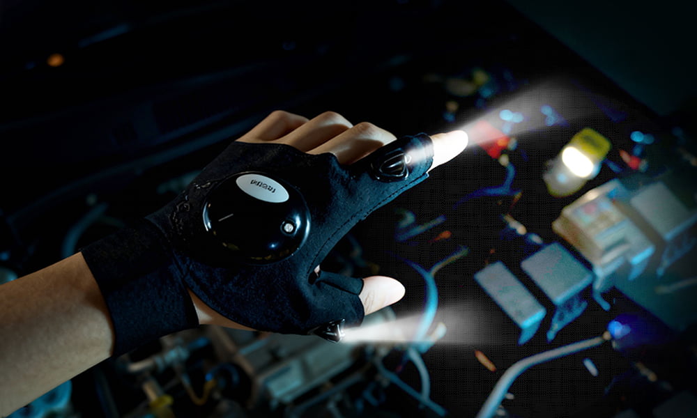 But FingerBeam Gloves turn that chaos into precision work: the high-intensity dual LEDs light up every detail in crisp clarity.